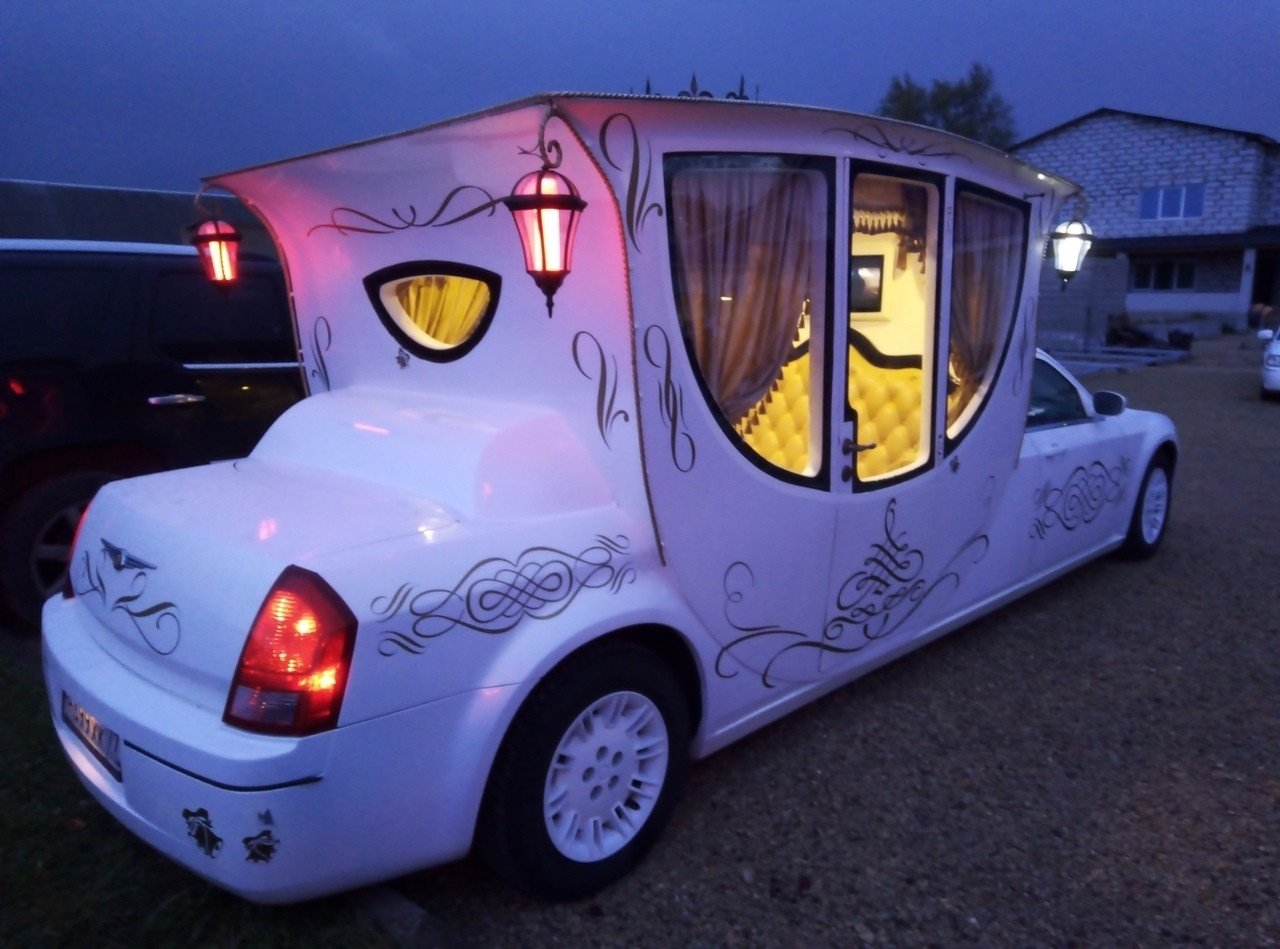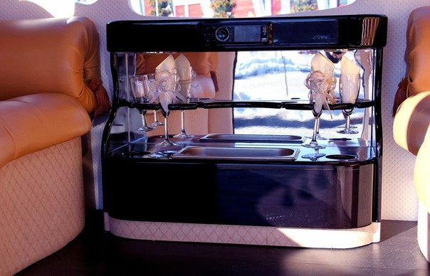 Если вы хотите незабываемо и красочно провести Вашу свадьбу, то аренда лимузина-кареты Крайслер поможет вам в осуществлении такой идеи. Внушительный и уникальный внешний вид на базе мощного автомобиля, подарят Вам массу незабываемых впечатлений. Салон изготовлен в сочетании из кожаных и деревянных материалов.