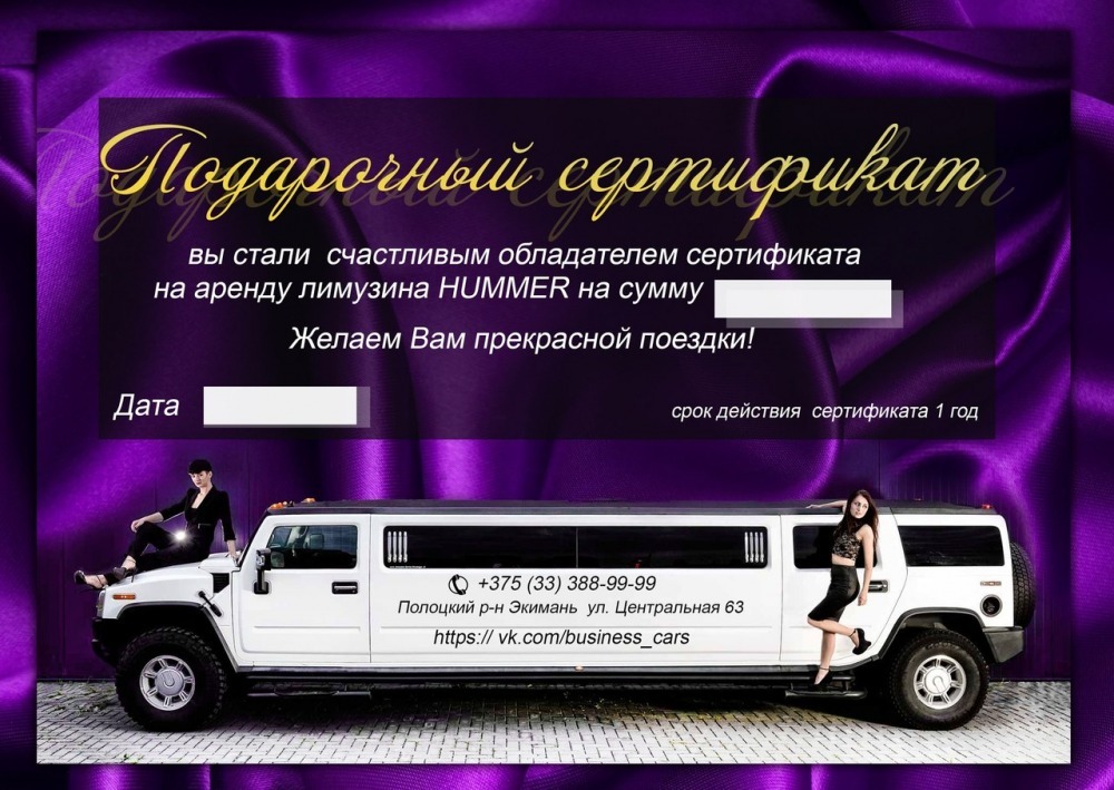 ПОДАРОЧНЫЙ СЕРТИФИКАТ «ПРОГУЛКА НА ЛИМУЗИНЕ» станет идеальным подарком к любому знаковому событию. Мальчишник или девичник, день рождения или корпоратив - мы сделаем любой праздник незабываемым! Party в лимузине станет приятным сюрпризом для друзей и гостей праздника, ведь кто не мечтает хотя бы раз в жизни с ветерком прокатиться по ночному городу в элитном длиннющем авто!